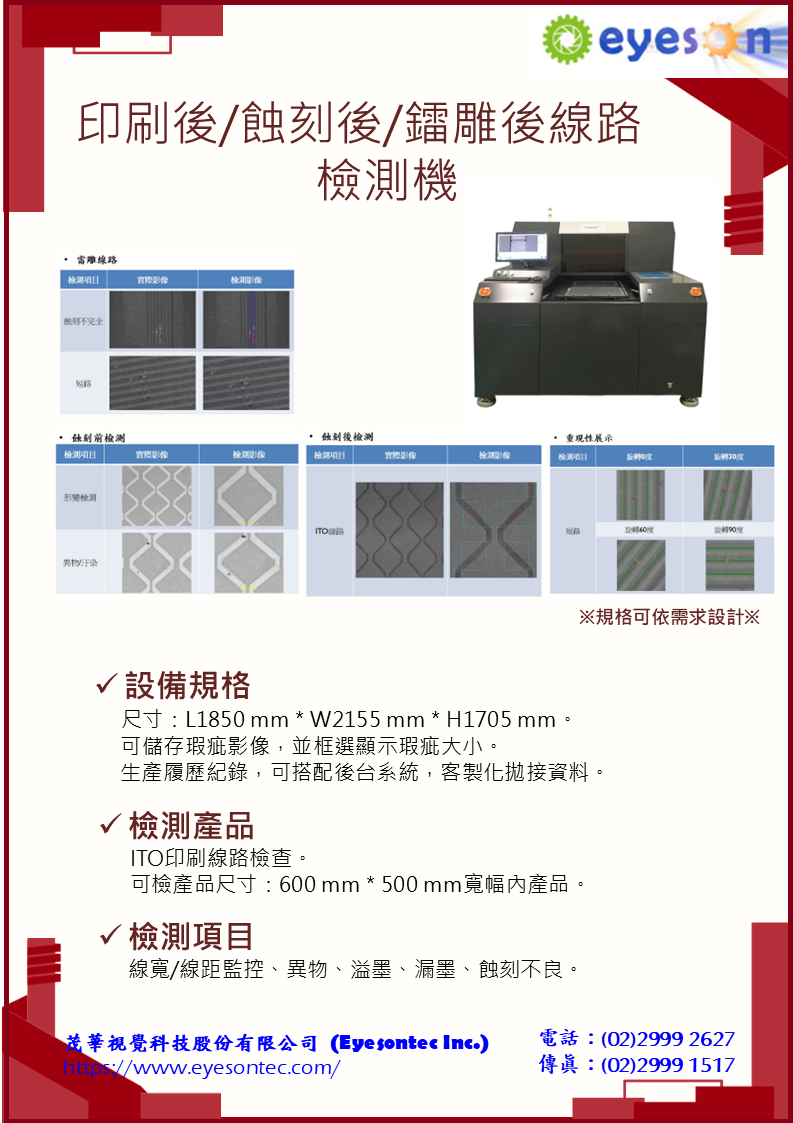 印刷後/蝕刻後/鐳雕後線路檢測機